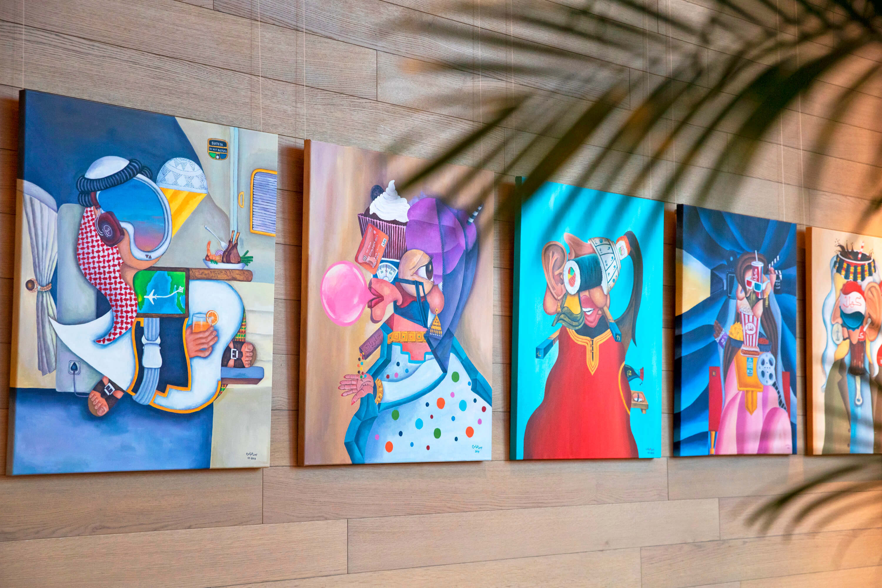Capture the phenomena of the new culture of eating out, connecting it to the Emirati traditions in his unique satirical representation. "Food for Thought" series is presented by Emirati artist Badr Abbas and is exclusively exhibited for the first time in public.