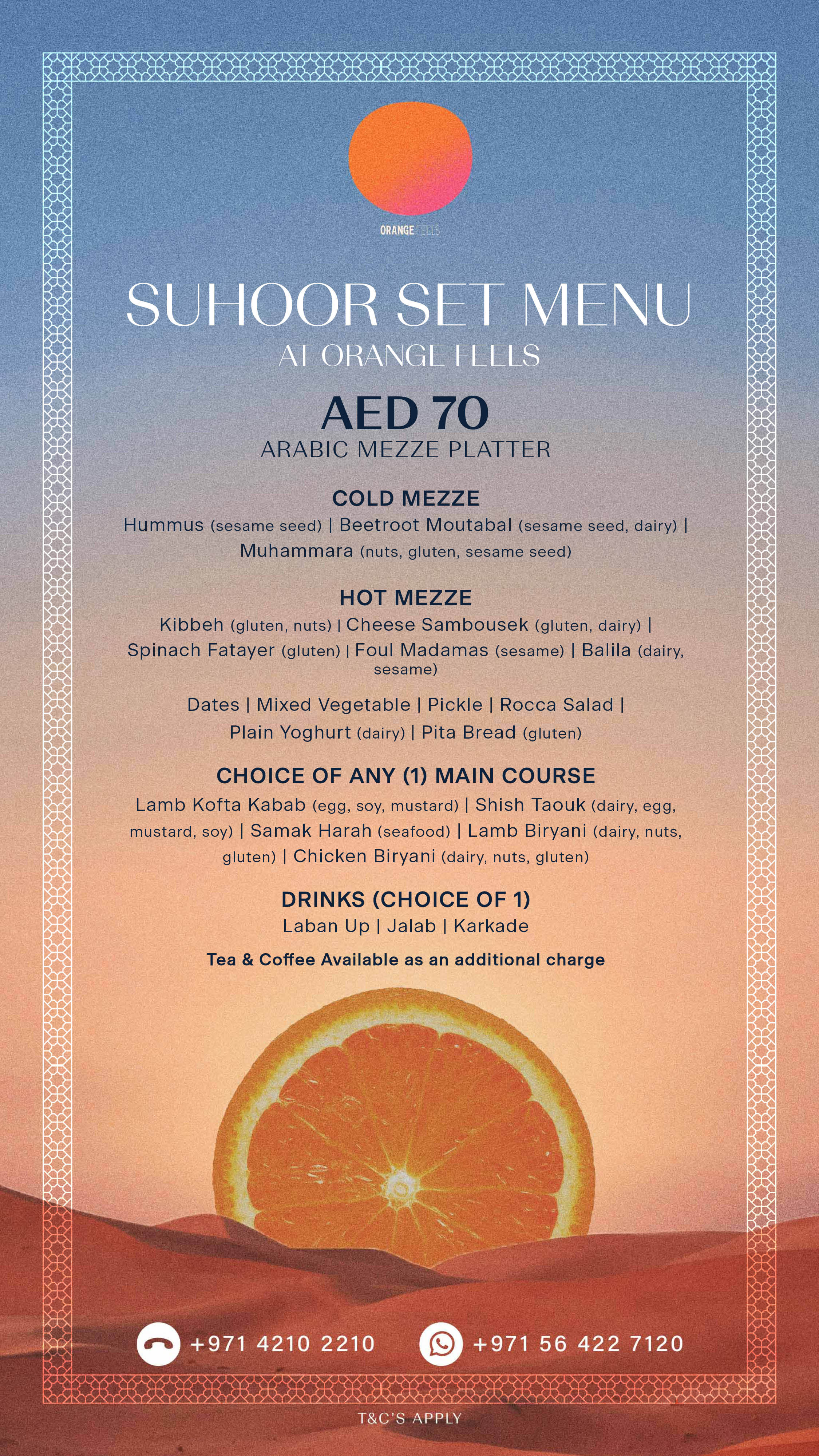 Experience a truly enchanting SUHOOR at Orange Feels' terrace where you can take in stunning panoramic views of the city.